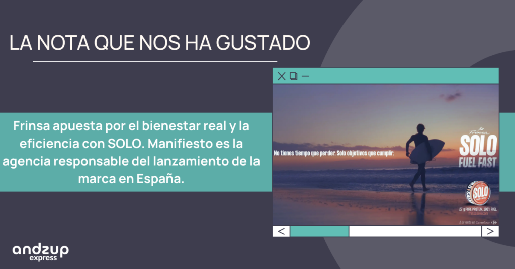 Frinsa apuesta por el bienestar real y la eficiencia con SOLOManifiesto es la agencia responsable del lanzamiento de la marca en España y de su adaptación a otros mercados a lo largo de 2026 y 2027. SOLO es la propuesta de nutrición funcional creada por Frinsa —referente en Europa en la producción y distribución de conservas de pescado y marisco— para acompañar el ritmo exigente de quienes priorizan su salud, su energía y su rendimiento diario. Tras varios meses a la venta en las tiendas de la compañía y en su web, la marca da un paso más y llega en exclusiva a los lineales de Carrefour en España, además de estrenar su primera campaña publicitaria.