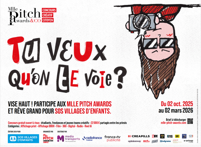 L’agence Mlle Pitch annonce le lancement de la 6e édition de son concours créatif et citoyen, les Mlle Pitch Awards & Co, avec un nouveau combat : la protection de l’enfance. Cette année, le brief est confié à la fondation SOS Villages d’Enfants, qui œuvre depuis près de 70 ans pour permettre à des frères et sœurs séparés de se retrouver dans un cadre familial stable. Ouvert aux étudiants, freelances et jeunes créatifs en agences francophones, le concours entend une nouvelle fois mobiliser la jeune génération autour d’une grande cause sociétale.